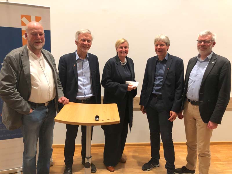 von links: Der frühere EKD-Friedensbeauftragte Renke Brahms, der AGDF-Vorsitzende Dr. Jochen Cornelius-Bundschuh, Dr. Dagmar Pruin, Jan Gildemeister und als Vertreter der Evangelischen Arbeitsgemeinschaft für Kriegsdienstverweigerung und Frieden Jens Lattke |