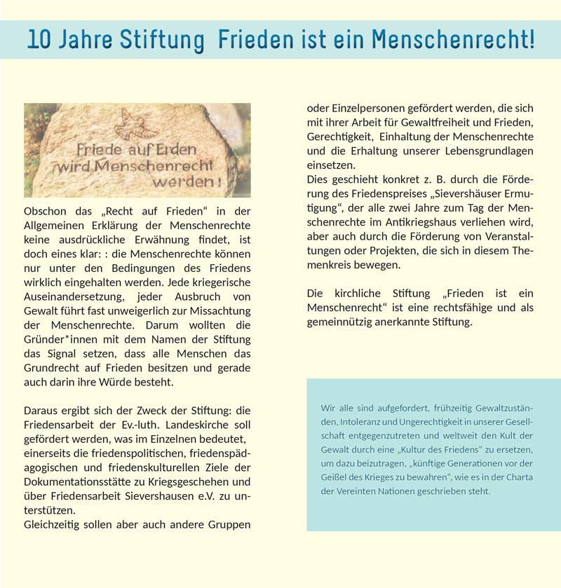 Satzung der Stiftung Frieden ist ein Menschenrecht